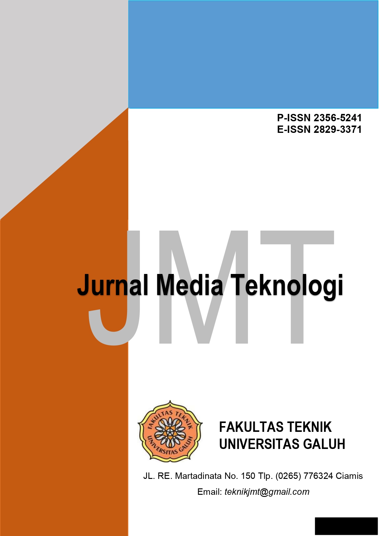 Jurnal Media Teknologi (JMT) merupakan jurnal ilmiah yang memuat artikel penelitian (research article) di bidang Teknik dan bidang lainnya yang relevan dengan ilmu teknik. Fokus publikasi jurnal ini dalam bidang ilmu keteknikan dan bidang lainnya dengan kajian yang relevan dengan engineering yang meliputi hasil penelitian dosen, mahasiswa, dan praktisi dari berbagai lembaga pendidikan, lembaga penelitian, dan departemen. JMT telah memiliki P-ISSN 2356-5241 dan E-ISSN 2829-3371. Jurnal ini terbit 2 kali dalam setahun. Periode 1 terbit per bulan September dan periode 2 terbit per bulan Maret. Batas maksimal penerimaan jurnal periode 1 yaitu pada bulan Juli dan periode 2 yaitu bulan Januari.