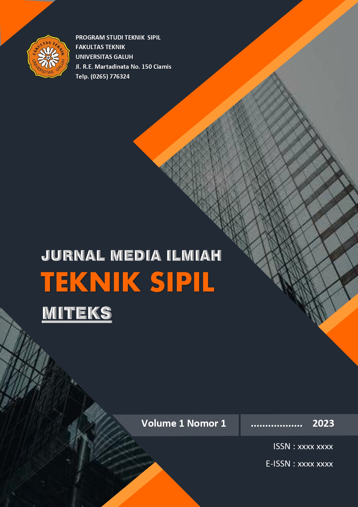 Jurnal Ilmiah Teknik Sipil (JITEKS) merupakan jurnal ilmiah yang diterbitkan oleh Jurusan Teknik Sipil Fakultas Teknik Universitas Galuh Ciamis. Bertujuan untuk menyebarluaskan hasil penelitian yang berkaitan dengan bidang teknik sipil, dimana jurnal ini diharapkan dari peneliti, mahasiswa, maupun praktisi di bidang teknik sipil. Jurnal Teknik Sipil (JITEKS) berdiri sejak tahun 2023, yang diterbitkan dua kali dalam setahun (Februari dan Agustus).